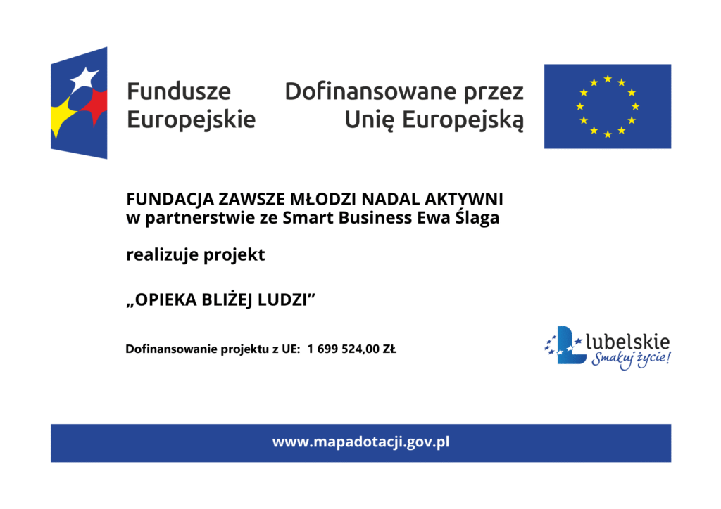 Mamy ogromną przyjemność zaprosić do bezpłatnego udziału w projekcie „Opieka bliżej ludzi”, który jest realizowany w partnerstwie ze SMART BUSINESS Ewa Ślaga.